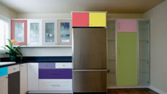 If painting cabinets, tape off surrounding walls (and, potentially, hinges.